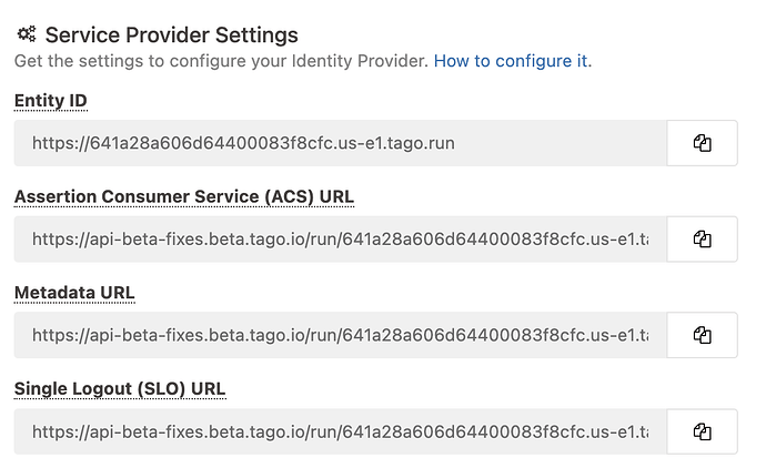 Copy the SLO URL from the Single Sign-On tab on the TagoRUN edit page